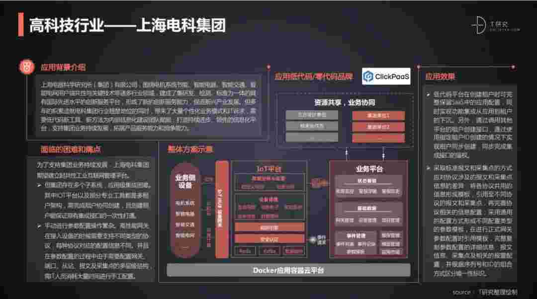 上海电器科学研究所(集团)有限公司,,,,围绕电机系统节能、、智能电器、、智能交通、、智能电网用户端共性与关键技术等诸多行业领域,,建成了集研发、、、检测、、、、标准为一体的具有国际先进水平的创新服务平台,,形成了新的创新服务能力,,,,促进新兴产业发展。。但多年的积累造就电科集团行业翘楚地位的同时,,,,带来了大量个性化业务模式和IT诉求,,,,需要低代码新工具、、、新方法为内部信息化建设团队赋能,,,,打造持续进步、、领先的信息化平 台,,,,支持集团业务持续发展,,,拓展产品服务能力和竞争能力。。