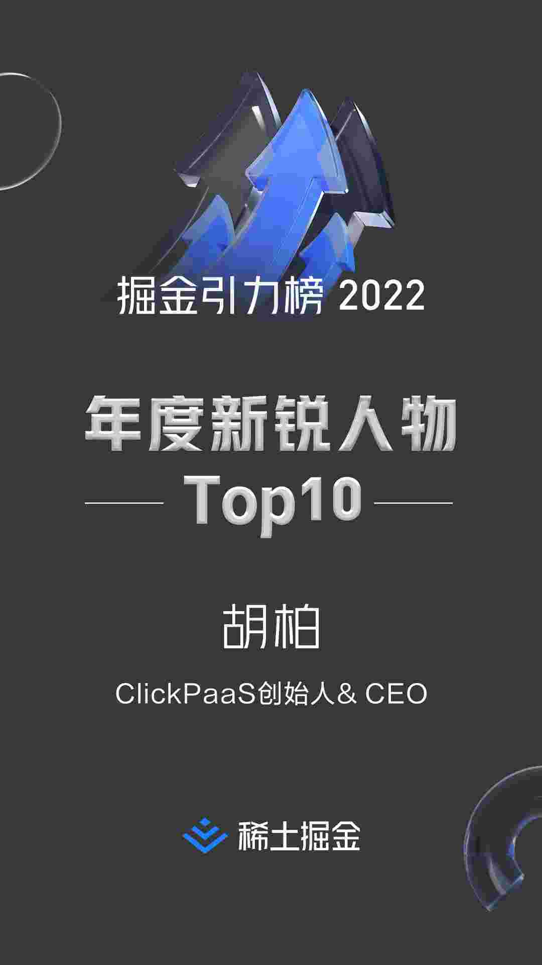 2022年1月6日,,,稀土掘金社区第一届「掘金未来大会」成功举办,,,会上发布了“2022 稀土掘金引力榜 年度新锐人物”榜单,,,上海爱湃斯科技有限公司(简称美团钱包商家版)创始人及CEO胡柏实力入选年度新锐人物TOP 10。。。