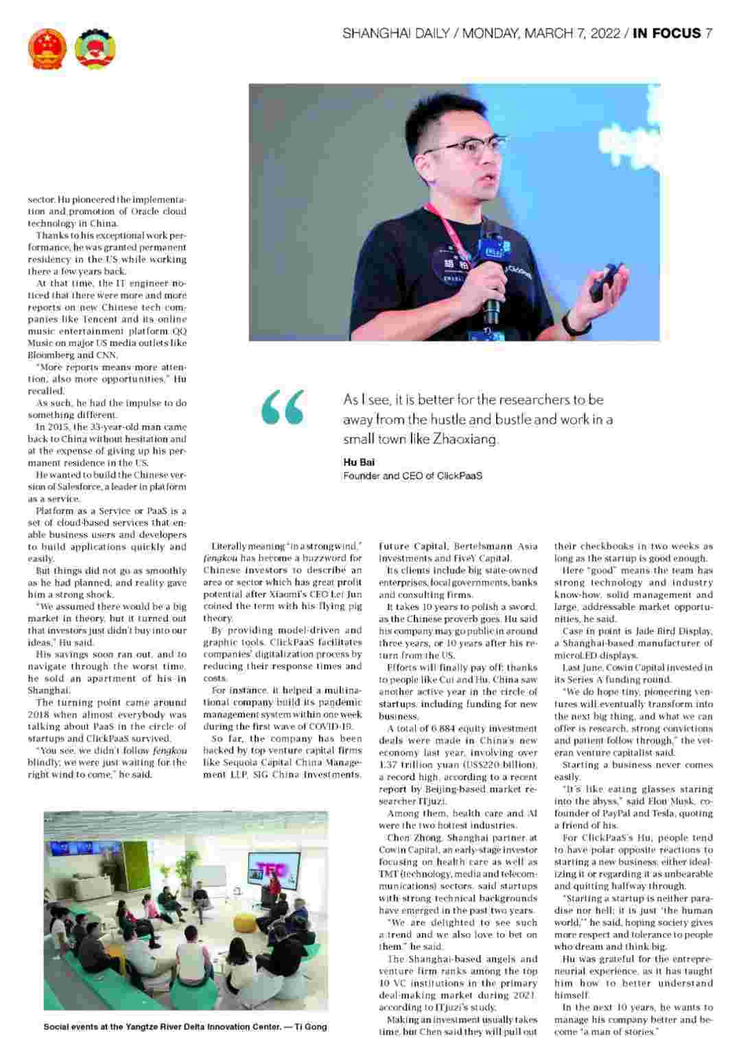 《上海日报》专访美团钱包商家版创始人、、CEO胡柏,,探究其创业背后的故事!!